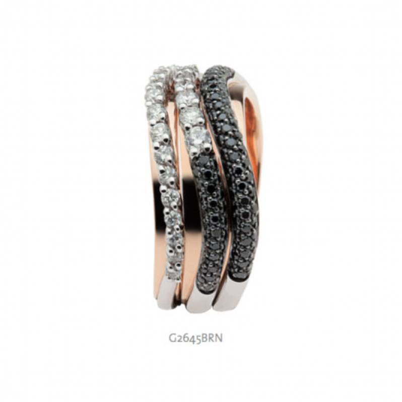 Anello Componibile Polello, Oro bianco e rosa con Diamanti bianchi e neri. Referenza: G2645BRN.
