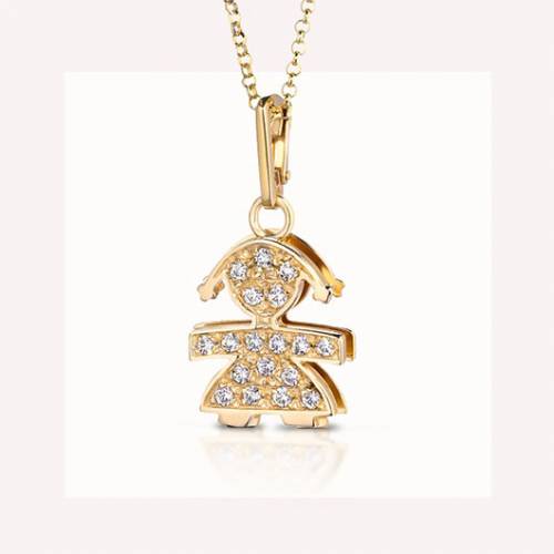 Ciondolo Le Bebè, Modello: I Pavé Piccoli, Femminuccia oro giallo. Altezza 1,40 cm, Larghezza 1,20 cm, Referenza: LBB 022.